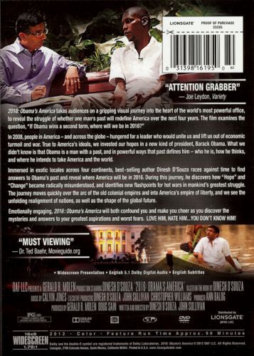 2016: Obama's America takes audiences on a gripping visual journey into the heart of the worlds most powerful office to reveal the struggle of whether one man's past will redefine America over the next four years. The film examines the question, "If Obama wins a second term, where will we be in 2016?" Across the globe and in America, people in 2008 hungered for a leader who would unite and lift us from economic turmoil and war. True to Americas ideals, they invested their hope in a new kind of president, Barack Obama. What they didn't know is that Obama is a man with a past, and in powerful ways that past defines him--who he is, how he thinks, and where he intends to take America and the world. Immersed in exotic locales across four continents, best selling author Dinesh DSouza races against time to find answers to Obama's past and reveal where America will be in 2016.
