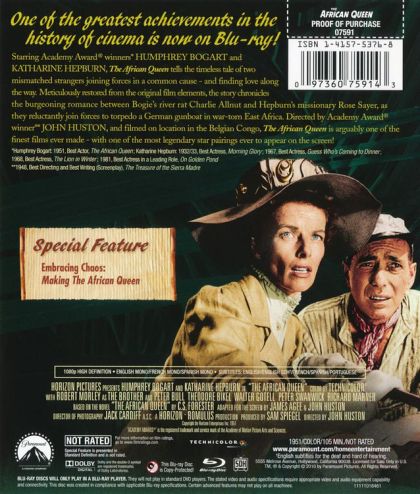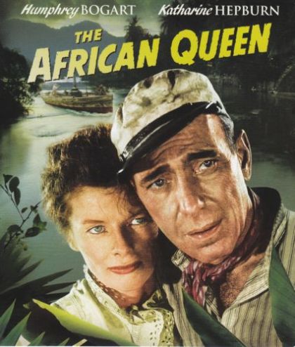 Rose and Samuel Sayer (Katherine Hepburn and Robert Morley) are a brother/sister missionary team in Africa. Charlie Allnut (Humphrey Bogart) delivers their mail, supplies, and news of the outside world. It's 1914, and World War I has already started in Europe. The Germans are invading parts of Africa, but the Sayers won't leave and are eventually found by the Germans. Samuel dies. Charlie convinces prim and proper Rose to leave with him on his boat "The African Queen". He warns her of a German ship guarding an area they will have to pass through, but Rose says they'll turn the boat into a torpedo and blow up the German ship. On the trip down river, the couple deal with rapids, a German fort, and boat trouble, but they also fall in love. They outfit the Queen to blow up the German ship, but before it does, they are captured by the Germans. The captain marries them before the ship hits a floating chunk of the Queen and explodes. Charlie and Rose, now married, swim away.