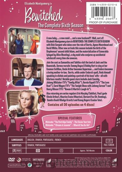 The long-running ABC sitcom Bewitched starred Elizabeth Montgomery as Samantha Stephens, a pert, perky, suburban housewife who happened to be a genuine witch, with all the usual magical powers. Samantha was married to Darrin Stephens (played during the first five seasons by Dick York, and in the final three seasons by Dick Sargent), a rising young advertising executive who worked at the New York firm of McMahon and Tate. A mere mortal, Darrin insisted that Samantha -- or "Sam," as he called her -- behave like an ordinary human being, and that she keep her witchcraft under wraps at all times. Sam tried her best to oblige, but the situations occurring in the course of the series invariably required her to cast a few spells and chant a few incantations to get her husband or herself out of jams.