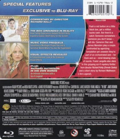 An unhappily married couple receive a small wooden box on their doorstep. At the push of a button, the box brings its bearer instant wealth but also instantly kills someone the bearer doesn't know.