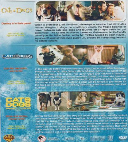 Work-at-home scientist Professor Brody (Jeff Goldblum) is developing a formula to cure human allergies to dogs. In the hidden war between dogs and cats, that makes him number one on the feline enemy list. New family pet, young Lou (Tobey McGuire) the Beagle, is blissfully unaware that fluffy but evil Mr. Tinkles (Sean Hayes) has targeted his new family, seeking to steal the formula. His plans to pervert it into something to make humans more allergic to dogs will allow him and his cat followers to rule the world when dogs are banned from human homes. Lou is drafted into the canine counter-espionage world, where he struggles to defeat Mr. Tinkles and his reluctant sidekick, Calico (Jon Lovitz). Despite attacks by cat-ninjas and a Russian Blue explosives expert, young Lou must defeat Mr. Tinkles, while avoiding Mrs. Brody’s (Elizabeth Perkins) anger over “accidents” in the house, and still being Scotty Brody’s (Alexander Pollock) best friend. He is helped out by a disparate pack of canine pals, including stalwart shepherd Butch (Alec Baldwin), sexy Saluki Ivy (Susan Sarandon), clumsy sheepdog Sam (Michael Clarke Duncan), and manic Chinese Hairless electronics whiz Peek (Joe Pantoliano).