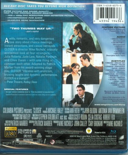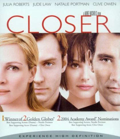 Two complete strangers meet on a crowded street in a busy city. Dan (Jude Law) and Alice (Natalie Portman) seem completely in love, but things are not always as they seem. Dan, a hopeful author, meets Anna (Julia Roberts) at a photo shoot for his book cover, and cannot get thoughts of her out of his mind. His unrequited love for Anna leads him to playing a nasty prank on a stranger he meets on an Internet chat site. Anna meets this stranger, and Larry (Clive Owen) turns out to be exactly what she thinks she's looking for. What follows is an exploration of modern relationships, as both of the couples, and each of the people, face the bitter struggles which occur when love misbehaves.
