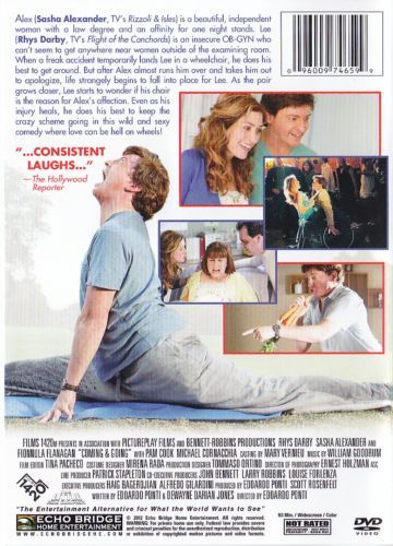Coming & Going is an irreverent romantic comedy that poses the question: How far would you go to capture the heart of the one you love? Lee (Rhys Darby) is a young, skilled OBGYN who lacks confidence when it comes to talking to women outside his successful medical practice. A minor injury temporarily lands him in a wheelchair and it is at that precise time that he meets his dream girl Alex (Sasha Alexander). Convinced she's only paid attention to him because he's in that chair, he stays in it to win her affections well after his injury has healed. Coming & Going is about love and the extreme things people do for it.