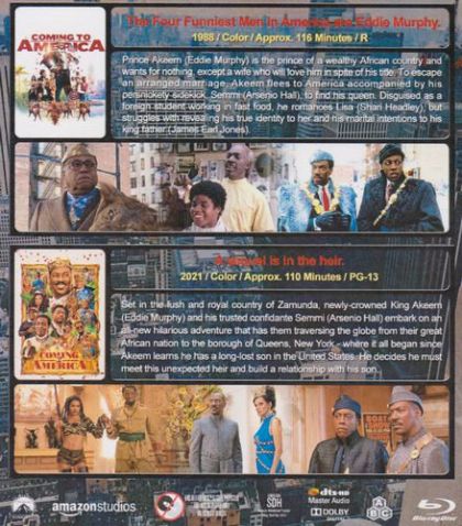 Three long, prosperous decades after Prince Akeem and Lisa McDowell's opulent wedding in Coming to America (1988), King Jaffe Joffer and Semmi, sensing that trouble is brewing in the African kingdom of Zamunda, drop a bombshell. As a result, with three lovely daughters and no sons, Prince Akeem's back is against the wall as General Izzi, the megalomaniac despot of the neighboring country of Nexdoria, dreams of seizing power through a political marriage of convenience. Now, newly-crowned King Akeem and his trusted confidante Semmi must return to where it all began, the bustling borough of Queens, New York, to retrieve Lavelle, the illegitimate son unsuspecting Akeem never knew existed. Can the prince of Zamunda restore peace and stability in less than a week?
