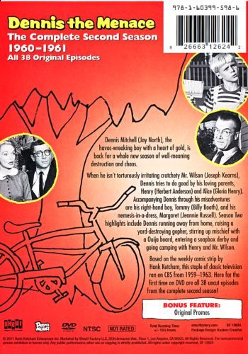 This is the 1959 CBS comedy sitcom starring Jay North. There were 146 B&W episodes that portrayed Dennis as the helpful menace that caused chaos. Dennis lived at 627 Elm Street next door to his best friend Mr. Wilson. Although Mr.Wison did not consider himself to be Dennis's best friend. Dennis always was there to help Mr. Wilson whether he wanted the help or not. Joseph Kearns played Mr. Wilson until his death in 1962. He was the perfect Mr. Wilson. He was persnickety, a perfectionist, highly intelligent and best of all, he still liked Dennis in spite of his helpful misadventures.