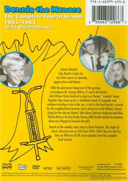 This is the 1959 CBS comedy sitcom starring Jay North. There were 146 B&W episodes that portrayed Dennis as the helpful menace that caused chaos. Dennis lived at 627 Elm Street next door to his best friend Mr. Wilson. Although Mr.Wison did not consider himself to be Dennis's best friend. Dennis always was there to help Mr. Wilson whether he wanted the help or not. Joseph Kearns played Mr. Wilson until his death in 1962. He was the perfect Mr. Wilson. He was persnickety, a perfectionist, highly intelligent and best of all, he still liked Dennis in spite of his helpful misadventures.