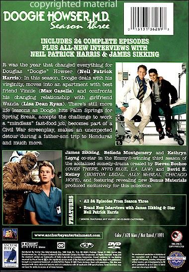 It was the year that changed everything for Douglas "Doogie" Howser (Neil Patrick Harris): In this season, Doogie deals with his virginity, moves into an apartment with best friend Vinnie (Max Casella) and confronts his changing relationship with girlfriend Wanda (Lisa Dean Ryan. There's still more life lessons as Doogie hits Palm Springs for Spring Break, accepts the challenge to work a "mindless" fast-food job, becomes part of a Civil War screenplay, makes an unexpected detour during a father-son trip to Honduras and much more.