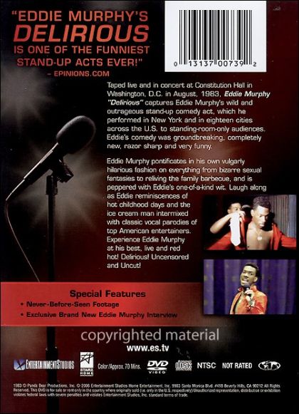 Light years before political correctness--1983 to be exact--or his comeback in tame Disney comedies, Eddie Murphy was a charismatic, wonderfully offensive, egocentric 22-year-old black comedian known for crude celebrity impersonations and often shockingly frank diatribes on racial and sexual politics. Dressed in a skin-tight red leather suit and delivering endless streams of obscenities faster than Richard Pryor ever did, Murphy is captured in this raunchy HBO special (a filmed document of his Grammy-winning album, Eddie Murphy, Comedian) at his confident, swaggering, comedic peak--a posture that soon disappeared after a string of bland Hollywood comedies. Here, however, his energy and sheer virtuosity command complete control over the audience for 107 minutes, whether he's mocking personalities like Elvis, James Brown, and Stevie Wonder, or spinning long, gag-filled personal anecdotes about the ice-cream man or dysfunctional family barbecues. There's no apologizing for the immature stereotyping, blatant homophobia, and sexism (though Murphy did so several years later) that surface during the routine. But, then again, unlike his much nastier, one-sided concert film, Raw, no topic here is safe from Murphy's uproarious tongue-lashings--including the comedian himself. --Dave McCoy