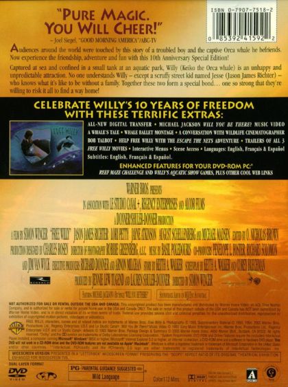 However, Dial (Michael Ironside), the owner of the park, doesn't much care for animals and isn't happy with the slower-than-expected progress of Willy's training; having insured the whale for $1 million dollars, he figures that Willy is worth more dead than alive, and Jesse, Rae, and Randolph have to rescue their aquatic friend and return him to the ocean when Dial seems ready to live up to his threats. Free Willy, which featured a star performance by a killer whale named Keiko (who is doubled in some scenes by animatronic models) included the theme song "Will You Be There," a top-ten hit for Michael Jackson, and spawned two sequels.