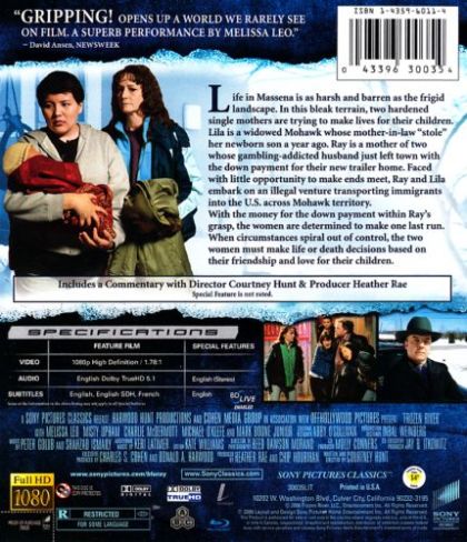 Ray Eddy (Melissa Leo) finds herself desperate for income after her husband, a gambling addict, runs away with the family’s seed money. After searching in vain for him at a casino, she loses her car to a thief, who turns out to be a Mohawk Indian woman, Lila (Misty Upham). Lila is in a similarly desperate financial situation with her own family. Ray and Lila decide to join forces to gain income illegally by smuggling immigrants across the frozen Hudson River. Together, they must try to survive the dangerous river, as well as avoid being caught by the authorities.