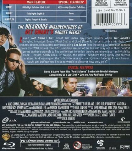 Get Smart's Bruce And Lloyd Out Of Control is a spin off feature film based on characters of the same name in the film, Get Smart. In this film technical analysts Bruce (Masi Oka) and Lloyd (Nate Torrence) with the government agency CONTROL are tasked with a secret mission that is of utmost importance to national security. When they drop the ball and the mission is a failure at their hands, their jobs become greatly in jeopardy. To salvage their careers and their futures with CONTROL, the two set out on a wacky adventure of rediscovery and redemption trying desperately to complete the mission.
