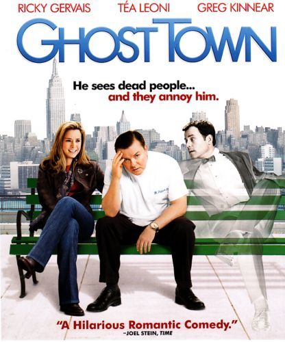 Ghost Town starts when Frank (Greg Kinnear) gets almost killed by a falling air conditioner only to immediately after get actually killed by a bus. As most ghost stories go, he cannot leave this world until he finishes his unfinished business. In his case, his unfinished business is trying to stop his widowed wife Gwen (Tea Leoni) from getting married to a jerk. To do this, he enlists the help of the Bert (Ricky Gervais) who can see dead people because he was actually killed for seven minutes during an operation but came back to life. However, Bert has his own problems to deal with first. He is an antisocial dentist who has no friends, dislikes his job, dislikes his neighbors, and has to deal with hordes of ghosts following him asking for help. Bert agrees to help Frank with his unfinished business and helps himself by discovering that he does actually have a heart.