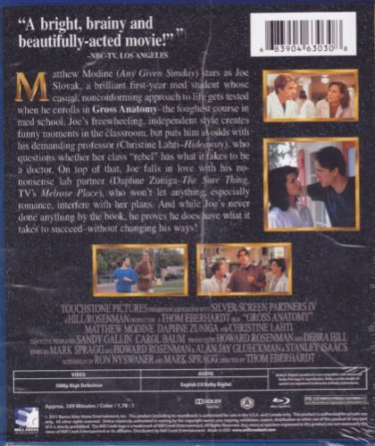 Joe Slovak (Matthew Modine) is a medical student from the wrong side of the tracks; he’s brilliant, but everything’s a joke to Joe. He’s never on time, and he never studies – or does he? He certainly “studies” his lab partner, Laurie Rorbach (Daphne Zuniga), in the human dissection class (Gross Anatomy 101, from which the film takes its name) taught by Dr. Rachel Woodruff (Christine Lahti) and Dr. Banumbra (Zakes Mokae)a class which they must pass, or be drummed out of medical school. At first, neither Laurie nor Dr. Woodruff care much for Joe, or his nonchalant attitude. However, Laurie and the other two members of their study group (one of whom is pregnant unexpectedly) eventually see that Joe’s real problem is that he cares too much, when Joe helps drive the pregnant woman, in full labor, to the hospital in the middle of studying for final exams. Dr. Woodruff is irritated by Joe’s tendency to downplay the importance of both her class and his future patients, but when she comes to learn what makes Joe tick, she shares a secret with him that forever changes his outlook on his future career as a doctor.