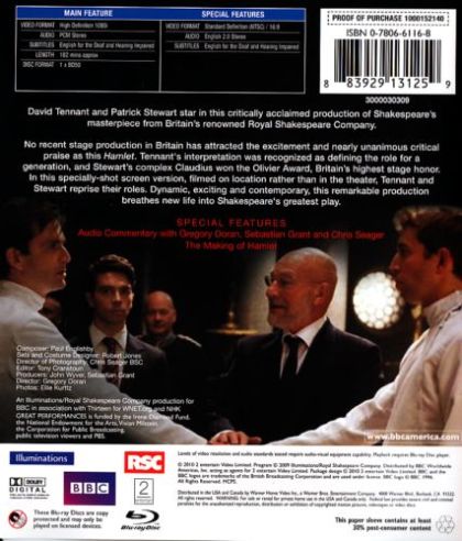 This stage production from Britain presents classically-trained thespian David Tennant in one of his most acclaimed roles - as William Shakespeare's Hamlet. As produced by Gregory Doran for the Royal Shakespeare Company in 2008, it also stars Patrick Stewart as Claudius, Pennie Downie as Gertrude and Mariah Gale as Ophelia.