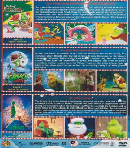 The Grinch hatches a scheme to ruin Christmas when the residents of Whoville plan their annual holiday celebration.