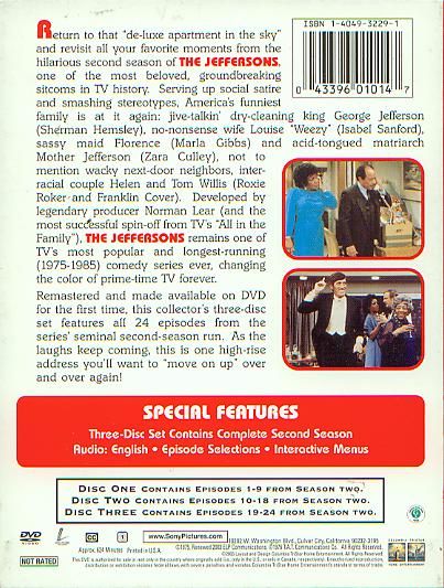Set in a high-rise apartment building in the heart of New York City, the show spun around George, a classic character portrait of vanity, arrogance, and petty prejudice. Balanced by the more level-headed but just as strong-willed Weezy, George's self-serving abrasiveness struck comic gold, particularly in the second season, when the show's style had been set but was still fresh. Episodes tackled subjects trivial (George and Tom wear the same tacky dinner jacket to a party) and trenchant (a country club invites George to join, but only so that a newspaper reporter will think the club is open to minorities). The black and white mix of the cast allowed for a sharply satirical take on race relations, which managed to have a genuine sense of hope while never glossing over the complexity of racial tension--and was consistently funny. In fact, it's striking how well the show's humor holds up; The Jeffersons turned a series of half-hour farces into a sly examination of marriage, race, class, and the battle of the sexes; it's sad that so few contemporary sitcoms have this kind of intelligence, courage, and sheer talent. --Bret Fetzer<