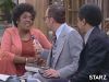 Upset that George, Louise, and Lionel aren't paying attention to her while she's visiting their apartment, Mother Jeffersons fakes a fall to command their attention.