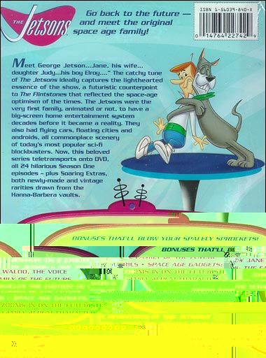 Aside from two commentaries by Waldo and a short making-of video with old footage of Hanna and Barbera, the DVD set has little in the way of extras: no bumpers, commercials, etc. The Jetsons hardly ranks as great animation, but for anyone who grew up during the '60s and '70s, these discs are the comforting video equivalent of a slice of yellow cake with fudge frosting and a glass of milk. (Rated G: alcohol and tobacco use, minor cartoon violence) --Charles Solomon