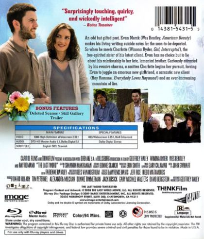 Talk about unusal jobs Evan Merck (Wes Bentley) is a writer living in California, his specialty is writing suicide notes. While attending a client’s funeral Merck meets the client’s sister, Charlotte (Winona Ryder). Charlotte does not know what Evan’s relationship with her brother was but soon becomes infatuated with him and begins a rocky relationship. Evan tries as hard as he can to keep his secret, but cannot hide it forever. He is afraid it will ruin his relationship with Charlotte. Evan’s continuous dishonesty turns into one deception after another that threatens to destroy his career and his already rocky realtionship with Charlotte.