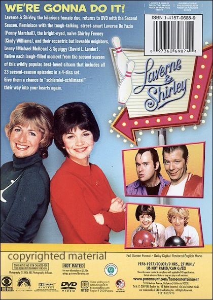 Season 2 is also highlighted by the regular appearances of Laverne and Shirley's underachieving neighbors Lenny (Michael McKean) and Squiggy (David L. Lander) who continue to make priceless, well-timed entrances, with Squiggy's trademark "Hello!" as one of the series' most crowd-pleasing running gags. The show's supporting cast members are all given moments to shine, and this season is further enriched by the hilarious rivalry between Laverne and her social-climbing nemesis Rosie Greenbaum (Carol Ita White) who appears in four episodes to taunt the girls with belittling insults. Fun-loving music is also a common factor here, and the season finale "Citizen Krane" takes its cue from Orson Welles' classic Citizen Kane, with the girls making their dubious show-biz debut as a singing duo, promoted by a Milwaukee impresario named "Charles Pfister Krane" (played with ham 'n' relish by character actor Severn Darden) who dubs them "The Rosebuds." It's a good example of the season's consistently high quality, owing mostly to the charms of its stars. And for those looking for a bit of pop-cultural perspective, consider this: Six weeks after Laverne & Shirley's second-season finale, Star Wars made its theatrical debut, and the world of entertainment would never be the same. (Note: There are no bonus features in this 4-disc set, and for legal and licensing reasons, some song performances and/or background music have been edited out or changed from the original TV broadcasts.) --Jeff Shannon