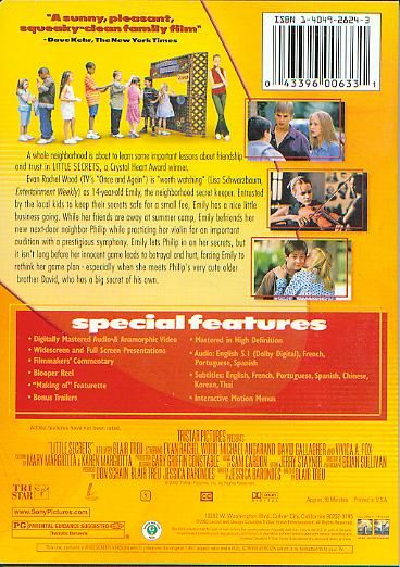 Keeping secrets is difficult and, sometimes, unhealthy. Emily (Evan Rachel Wood) discovers a talent for keeping secrets early in life and deems the skill marketable enough to open her own neighborhood business. Emily is also an amazing violin player with high aspirations for a musical career. Secret-keeping proves lucrative at first, but eventually the burden weighs on Emily and affects her ability to concentrate, hurting her chances of making the local youth symphony. Resolving her dilemma requires the help of two new friends, her violin teacher, parents, and a fair amount of soul-searching. Eventually, Emily's journey leads to the dissolution of her business and a cathartic revelation of a major secret of her own. The moral of Emily's experiences: "You can't keep secrets about yourself and live a true life," and "if you want to be close to someone, you can't keep secrets from them." (Ages 7 and older) --Tami Horiuchi