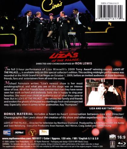 The full two-hour performance of Liza Minnelli's 2009 Tony Award-winning concert, LIZA'S AT THE PALACE, is available only on this special collector's edition. This exciting midnight performance was recorded at the MGM Grand in Las Vegas on October 1, 2009.