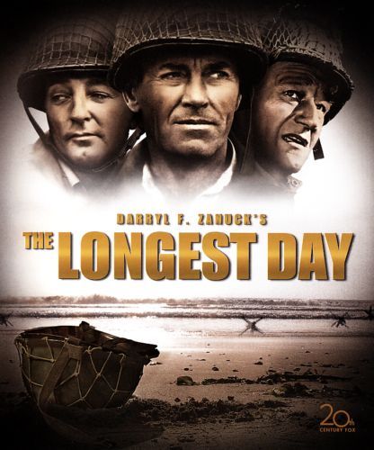 The longest day is D Day. We see the Normandy Invasion in interwoven stories of the combatants. Among the numerous characters are prescient Field Marshall Erwin Rommel (Werner Hinz), tough Lt. Col. Vandervoort (John Wayne), Pvt. Flanagan (Sean Connery), Brig. Gen. Cota (Robert Mitchum), Theodore Roosevelt Jr.(Henry Fonda), and unpleasant Flight Officer Campbell (Richard Burton). The film shows the landing on the beaches, and the fighting farther inland where the paratroopers have landed. The plight of the French is well portrayed as their country becomes the battleground. The films shows the fighting from the points of view of both sides, and shows the Allies as taking advantage of the poor preparation of the Germans.