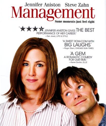 Jennifer Aniston may get top billing in this romantic comedy, but MANAGEMENT belongs to Steve Zahn. The often goofy, always likable actor plays Mike Cranshaw, a man with little ambition ...but lots of heart who works at his parents' motel in small-town Arizona. When paint-saleswoman Sue Claussen (Aniston) stops at the inn, Mike immediately plots an awkward plan to seduce her. Things go better than either of them would have guessed, but Sue still leaves for her home in Maryland. Mike impulsively follows her east, beginning an uncomfortable but heartfelt courtship that takes the road less traveled. Sue's move from Maryland to Washington does little to deter Mike, but the reappearance of her ex-boyfriend, ex-punk Jango (Woody Harrelson), could throw him off course. MANAGEMENT balances its star power (A-list actress Aniston) with its indie roots (theatrical distributor Samuel Goldwyn Films) to make a movie that doesnt fit the rubric of either genre. It's too quirky for a studio film, but it's sweet enough that it shouldn't scare away any fans of Aniston's work in FRIENDS and HE'S JUST NOT THAT INTO YOU. She's more in the territory of THE GOOD GIRL and FRIENDS WITH MONEY here, and Sue is a complicated part that Aniston pulls off. In his other roles, Zahn often labors in the background and steals scenes from actors with higher billing, but MANAGEMENT is indisputably a leading role for the actor. His Mike commits acts bordering on criminal (or at least crazy) in his cross-country pursuit of Sue, but thanks to Zahn's performance, it's hard not to feel devoted to his character and to understand Sue's (reluctant) attraction. Fans of the cringe-worthy humor of comedies like THE OFFICE will enjoy squirming through this unlikely romance. [D-Man2010]