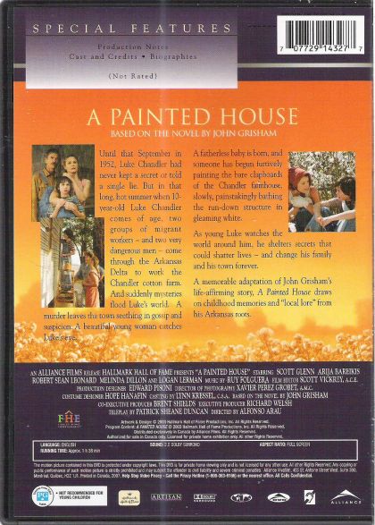 Even by the high standards of the Hallmark Hall of Fame, A Painted House is well above average. John Grisham's well-received "lawyer-free" novel was respectfully adapted by Patrick Sheane Duncan (Mr. Holland's Opus), and director Alfonso Arau (Like Water for Chocolate, A Walk in the Clouds) brings just the right touch of toughness and delicate nostalgia to Grisham's semi-autobiographical remembrance of boyhood in rural Arkansas, circa 1952. Grisham's alter ego is 10-year-old Luke Chandler (well played by Logan Lerman), and when tempers flare into violence between the Mexican migrant workers and itinerant "hill people" hired to harvest cotton on his grandfather's farm, Luke--who has witnessed a murder--must decide whether to expose the killer or keep the crime a secret. Filled with warm grace notes and a perfect cast including leather-faced Scott Glenn and Melinda Dillon (as Luke's grandparents), A Painted House juggles multiple crises (including devastating rainstorms) with strong family values, capturing the humor and hardship of farming life at a crossroads of fading tradition and inevitable change. Combining elements of To Kill a Mockingbird and Places in the Heart, this is a purebred Hallmark production in every respect, earning a badge of pride for everyone involved in its making. --Jeff Shannon