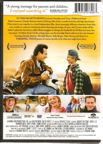 When Hollywood actor Mack Cameron (Timothy Bottoms) gets a role in a small independent film being shot in his hometown, his life, marriage, and personal frustrations are suddenly put into perspective. But unless he forces himself to reevaluate where it all went wrong, he might end up destroying not only his own life, but that of the innocent and talented kid who is cast opposite him. PARADISE TEXAS is a story about the choices people make and how relationships can either save them or push them even further over the edge.
