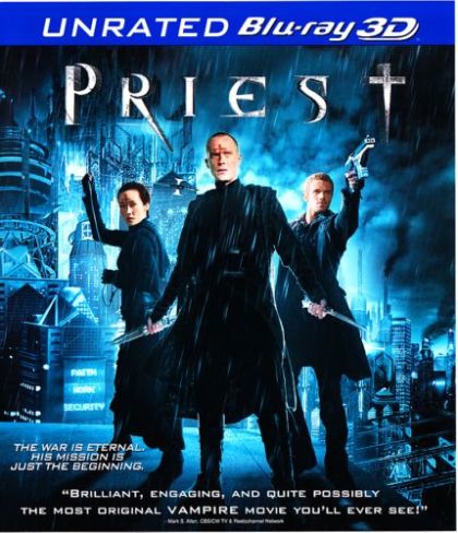 What's harder to kill than a vampire? The thriving vampire movie genre, which reappears here in the form of Priest, an entertaining mash-up of sci-fi, horror, and various Westerns adapted from a graphic novel by Min-Woo Hyung and starring Paul Bettany (The Da Vinci Code, Creation, Iron Man, etc.) in the title role. In Hyung's world (as depicted by screenwriter Cory Goodman and director Scott Charles Stewart), the future is a dystopian nightmare still reeling from centuries of conflict between humans and vast armies of slimy, humanoid vampires; having been saved (or so we're told) by fierce and noble warrior priests, people now live in a great, grim city that makes the Los Angeles depicted in Bladerunner look like a vacation resort, while the remaining vampires have been consigned to "reservations" in the desert. A few hardy souls subsist out in the barren wilderness as well, and the fun starts when a gang of vamps attacks one family, abducting pretty young Lucy (Lily Collins, Phil's daughter) and killing her parents. The girl's sharpshooting boyfriend (Cam Gigandet) seeks out Bettany's retired Priest, who's only too willing to defy the dire warnings of the arrogant clergymen who control the cities, jump on his supercycle, and head out to do battle with a foe that, far from being defeated, has been regrouping and now plans to--gasp!--lay waste to all mankind. A couple of twists involving central characters are eventually revealed, but the best parts are the action sequences in the vampires' enormous "hive," aboard (and on top of) a speeding train, and elsewhere as the Priest and a few of his cross-bearing (on their foreheads, that is) comrades, including action veteran Maggie Q, try to stop the head vampire dude (basically a fanged version of Clint Eastwood's Man with No Name) and his ravenous minions. Considering the range of 21st-century vampire flicks, from the arty Swedish import Let the Right One In to the romantic Twilight series, there's plenty of room for a popcorn chewer like Priest.