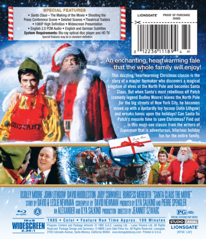 For centuries, Santa Claus (David Huddleston) and his elves have been merrily making toys at the North Pole for the children of the world. This year, head elf Patch (Dudley Moore) decides to try his fast new automated toy machine. But when the children of the world wake up and find that the machine has malfunctioned and their toys don’t work, Patch leaves the North Pole and heads to Manhattan to prove himself. Being a very smart but also very naïve elf, he gets mixed up with B.Z. (John Lithgow), the not-so-honest owner of B.Z. Toys, who is currently under investigation by the US Senate for their shoddy toy-making practices. B.Z. uses Patch and his popular new candy canes to try to capitalize on Christmas, pushing Santa out and ushering in his own “Christmas II.” But when Patch discovers the candy canes have a dangerous defect and B.Z. refuses to stop production, it’s up to Patch to reunite with Santa and his new orphan friend Joe (Christian Fitzpatrick) to stop B.Z. Toys and restore Christmas to the children of the world.