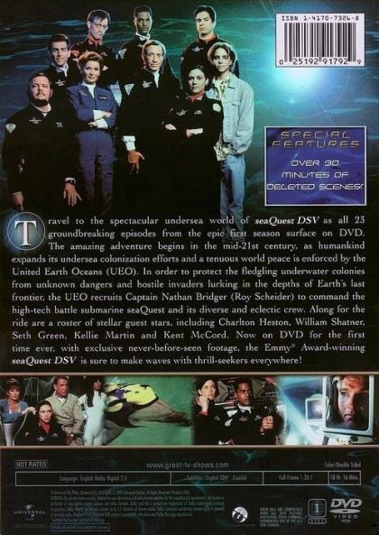 Travel to the spectacular undersea world of seaQuest DSV as all 23 groundbreaking episodes from the epic first season surface on DVD. The amazing adventure begins in the mid-21st century, as humankind expands its undersea colonization efforts and a tenuous world peace is enforced by the United Earth Oceans (UEO). In order to protect the fledgling underwater colonies from unknown dangers and hostile invaders lurking in the depths of Earth's last frontier, the UEO recruits Captain Nathan Bridger (Roy Scheider) to command the high-tech battle submarine seaQuest and its diverse and eclectic crew. Along for the ride are a roster of stellar guest stars, including Charlton Heston, William Shatner, Seth Green, Kellie Martin and Kent McCord. Now on DVD for the first time ever, with exclusive never-before-seen footage, the Emmy® Award-winning seaQuest DSV is sure to make waves with thrill-seekers everywhere!