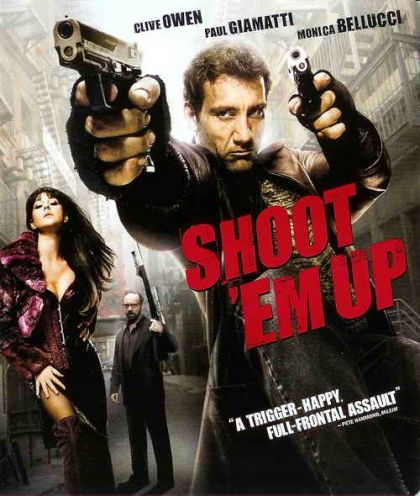 “Shoot ‘Em Up” is the story about a man named Mister Smith (Clive Owen) who was minding his own business in while eating lunch and during a shoot out is forced to help deliver a pregnant woman’s baby. Now when that same woman turns up dead, Smith is give custody of the baby to protect the newborn from the nefarious Hertz (Paul Giamatti). Smith’s only help and friend in this whole affair is a motherly prostitute, Donna Quintano (Monica Belluci). Now Smith can’t mind his own business as he makes his way through the city, shooting his way through an army of gunmen who would see him and this crying baby dead.