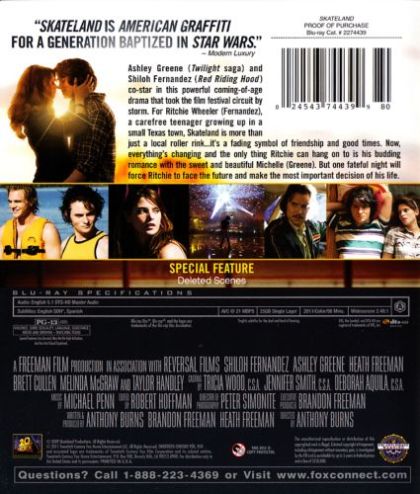 A handful of teenagers find the life they've known is slipping away from them in this independent coming-of-age drama. Nineteen-year-old Ritchie Wheeler (Shiloh Fernandez) is the manager of a roller rink in a small town in East Texas. Ritchie's job gives him a chance to hang out with his friends and get paid for it, but fewer kids are interested in roller skating, and Ritchie's life increasingly feels like an extension of high school as he parties his evenings away without moving forward. Ritchie's kid sister, Mary (Haley Ramm), and his girlfriend, Michelle (Ashley Greene), both think its time he tried to make something of himself, but Ritchie isn't sure which way to go, even as he sees a disturbing reflection of himself in Brent (Heath Freeman), Michelle's older brother. Brent left town for a promising career in motorcycle racing until an accident ended his career and now he's back, drinking beer with his sister's friends and picking up high school girls. As the roller rink is poised to close and divorce tears apart both Ritchie's and Michelle's families, they find themselves leaving childhood behind while uncertain about what adulthood holds. The first feature film from director Anthony Burns, Skateland was an official selection at the 2010 Sundance Film Festival.