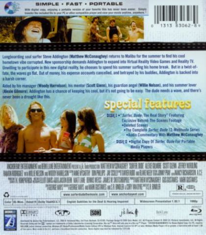 Pro-surfer Steve Addington (Matthew McConaughey) is really living the surfer's dream, worrying about nothing and spending all his time surfing, drinking, getting high and chasing women. All this made possible by the constant flow of money from his sponsor, a well renown surf-board manufacturer. His dream is suddenly shattered as he learns, upon returning from a surfing trip abroad, that his sponsors have sold out to a big corporation. Through the corps’s manager in charge of handling the surf-related business, Eddie Zarno (Jeffrey Nordling), he soon learns that his new “owners” have very different plans for him than just being himself and enjoying his laid-back lifestyle: a pretty lurid reality TV show and the use of his image and other personal data as part of a brand new virtual reality surfing videogame are what Zarno has in mind for him. While Steve might be willing to consent to the reality show participation, he balks at the videogame part as he feels that it is against the true surfer’s spirit and staunchly refuses, despite Eddie’s threats, to do any further work for them. Threats soon turn to action as all of Steve’s credit lines are pulled and he finds himself, in the middle of a big wave drought to boot, unable to continue living the life he had enjoyed so far. But not all is lost as he befriends Zarno’s assistant Danni Martin (Alexie Gilmore) whose father is a very rich businessman back in New York. Danni takes heart to Steve’s desperate situation and convinces her father to take over the corporation and fire Zarno on the very spot, reinstating Steve in his surfing icon role and giving him free reign again.