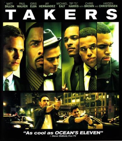 “Takers” sees a group of skilled bank robbers consisting of John Rahway (Paul Walker), A. J. (Hayden Christensen), Gordon Jennings (Idris Elba), and brothers Jake Attica (Michael Ealy) and Jesse Attica (Chris Brown). They have just completed the ultimate heist and have retired to a sunny vacation spot of luxury and no extradition. All that changes when an old member of their gang, Ghost (Tip Harris) is released from prison. Ghost has big plans and that includes an armored car worth 20 million dollars! Once he convinces John and his crew to pull off the job, they return to American with a plan and a hardnosed police detective, Jack Welles (Matt Dillon) hot on their tail!
