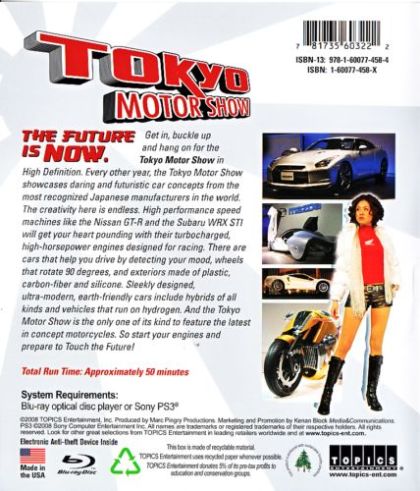 Get in, buckle up and hang on for the Tokyo Motor Show in High Definition. Every other year, the Tokyo Motor Show showcases daring and futuristic car concepts from the most recognized Japanese manufacturers in the world. The creativity here is endless. High performance speed machines like the Nissan GT-R and the Subaru WRX STI will get your heart pounding with their turbocharged, high-horsepower engines designed for racing. There are cars that help you drive by detecting your mood, wheels that rotate 90 degrees, and exteriors made of plastic, carbon-fiber and silicone. Sleekly designed, ultra-modern, earth-friendly cars include hybrids of all kinds and vehicles that run on hydrogen. And the Tokyo Motor Show is the only one of its kind to feature the latest in concept motorcycles. So start your engines and prepare to Touch the Future!