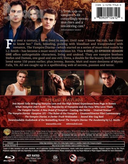 It's easy to take a cynical attitude toward a supernatural soap like The Vampire Diaries, but it gets more things right than wrong. There's moping, goopy ballads, and mumbo jumbo about crystals, but the story lines are compelling and the writers are smart enough to anticipate the Twilight comparisons. When his girlfriend Caroline (Candice Accola) asks why he doesn't sparkle, Damon quips, "Because I live in the real world." Extras include deleted scenes, featurettes, and commentary on the pilot. --Kathleen C. Fennessy