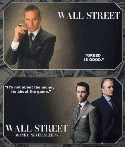 Gordon Gekko (Michael Douglas) after his 24 years of jail time. Released in a new world where the global economy is on the verge of collapse, Gordon attempts to reconnect with his daughter, Winnie (Carey Mulligan) who wants nothing to do with him. Winnie however is set to marry, Jake Moore (Shia LaBeouf), a young up and coming Wall Street Broker. Jake has a huge admiration for Gordon who together with Jake take on the stock market as Gordon embraces a world that twenty years earlier told him he was the bad guy. But Jake needs to be careful not to lose his soul or Winnie in the process.