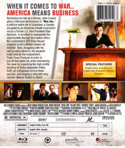 A loose follow up to 1997's Grosse Pointe Blank using similar character and plotline of an assassin, War, Inc. is the story of Brand Hauser (John Cusack) a hired assassin. His job is given to him by the Vice President (Dan Akroyd) who is the owner of Tamerlane, a large corporation. Mr. Vice President wants Hauser to assassinate Oil Minister Omar Sharif (Lyubomir Neikov) who is trying to get a pipeline built through Turiqstan on its own rather than through Tamerlane. As he prepares to do this he uses the wedding of a big star from Central Asia, Yonnica Babyyeah (Hilary Duff) as a cover for his operation. When Brand finds himself head over heels for a beautiful reporter, Natalie Hegalhuzen (Marissa Tomei), things become a lot more complicated for him.