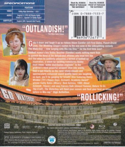 Bobby Boucher (Adam Sandler) is a water boy par excellence. He takes his job very seriously. He gets no respect from the college football players he serves his most precious beverage. It leads to him losing his position because his peculiar preoccupation with the best quality water disrupts the team. Bobby notices a sanitation problem with another team and offers his services. Again he gets no respect but is encouraged to defend himself by Coach Klein (Henry Winkler). When football players talk about Bobby’s Momma (Kathy Bates), this meek bayou boy takes out his frustrations with gusto. When Coach Klein sees Bobby's moves and offers him chance to actually play as a tackle. Bobby's momma is not happy when she hears her boy is being given the opportunity to go college. She's even more upset when she hears he's going to be play the "foosball". Then there’s the girl factor: Momma doesn’t allow girls to come around. But bad girl Vicki Vallencourt (Fairuza Balk) has her eye on Bobby. Can Bobby help the team? Will he get the girl? Will Momma come around? Have a sip of water while you watch.