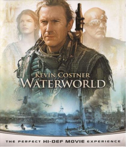 Hailed as Kevin Costner's SciFi version of "Heaven's Gate," Waterworld takes place in a future where no-known land exists because the polar ice caps have melted - drowning the world and killing off most of humanity. Now the beraggled remanents of humanity live on floating islands of scavanged wood and dirt is a commodity more precious than gold. Now in one floating wood island, a child has been discovered with a tatoo on his back that is a map leading to the only remaining land above the water. It quickly becomes a race between the good and bad guys as to who will grab the kid and take posession of the only Terra Firma left in the future.