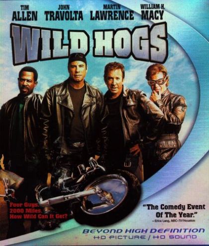 Four middle-aged, middle-class men decide to ride their motorcycles across America to cope with mid-life crisis. They wear jackets with the emblem Wild Hogs embroidered on the back. They are dentist Doug Madsen (Tim Allen), plumber Bobby Davis (Martin Lawrence), shy sensitive bachelor programmer Dudley Frank (William H. Macy), and recently dumped investor Woody Stevens (John Travolta). When they get to New Mexico, they stop in a biker bar owned by a real motorcycle gang. There's a confrontation with Jack (Ray Liotta) the chief of the gang, and later the real biker gang steals one of the Wild Hogs motorcycles. The Wild Hogs hatch a plan to get it back.