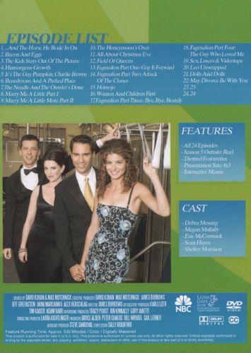 The complete Fifth Season of Will & Grace on DVD, including all new Featurettes and a Season 5 Outtake Reel.