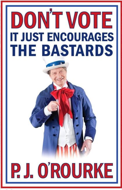 Put the country's big, fat political ass on a diet. Lose that drooping deficit. Slim those spreading entitlement programs. Firm up that flabby pair of butt cheeks which are the Senate and the House. Having had a lot of fun with what politicians do, P.J. O'Rourke now has a lot of fun with what we should think about those politicians. Nothing good, to be sure. Best-selling humorist P.J. O'Rourke is back with his latest political masterpiece, Don't Vote--It Just Encourages The Bastards. Using his signature wit and keen observational skills, O'Rourke reflects on his forty year career as a political commentator, spanning his addlepated hippie youth to his current state of right-wing grouch maturity. Don't Vote--It Just Encourages The Bastards is a brilliant, disturbing, hilarious and sobering look at why politics and politicians are a necessary evil--but only just barely necessary. Read P.J. O'Rourke on the pathetic nature of politics and laugh through your tears or--what the hell--just laugh.