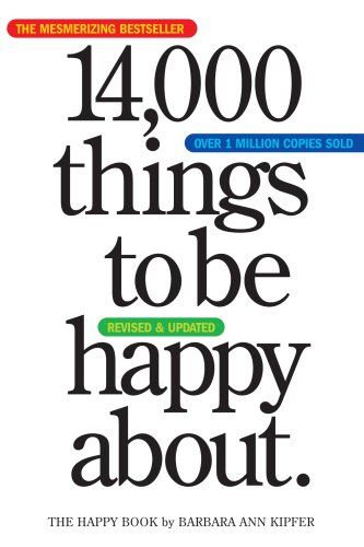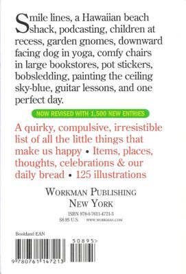 Something to be happy about: This mesmerizing bestseller is revised and updated. Originally published 25 years ago (happy anniversary!) from a list that Barbara Ann Kipfer started making as a child, it’s the book that marries obsession with happiness. And it now has 2,000 fresh and more current reasons to be happy:Rabbit tracks in the snow. Kiteboarding and kitesurfing. Caramel gelato.Scoring super-high on a Scrabble turn. Babies burping. Summer storms. White cupcakes with multicolored sprinkles. Big red barns. 20 minutes all to yourself.No opinions, no explanations, no asides, no footnotes, editorializing, or proselytizing. Just the simple premise of a list of things that make us smile. With its chunky shape, striking black-and-white cover, and 100 whimsical illustrations by Pierre Le-Tan, the new 14,000 Things is an irresistible catalog of good thoughts completely updated to reflect today’s world—and an uplifting gift for people of all moods and all ages.