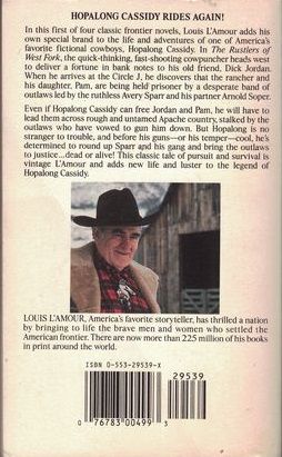 In this first of four classic frontier novels, Louis L'Amour adds his own special brand to the life and adventures of one of America's favorite fictional cowboys, Hopalong Cassidy. In The Rustlers of West Fork, the quick-thinking, fast-shooting cowpuncher heads west to deliver a fortune in bank notes to his old friend, Dick Jordan. When he arrives at the Circle J, he discovers that the rancher and his daughter, Pam, are being held prisoner by a desperate band of outlaws led by the ruthless Avery Sparr and his partner Arnold Soper. Even if Hopalong Cassidy can free Jordan and Pam, he will have to lead them across rough and untamed Apache country, stalked by the outlaws who have vowed to gun him down. But Hopalong is no stranger to trouble, and before his guns or his temper cool, he's determines to round up Sparr and his gang and bring the outlaws to justice ... dead or alive! This classic tale of pursuit and survival is vintage L'Amour and adds new life and luster to the legend of Hopalong Cassidy.