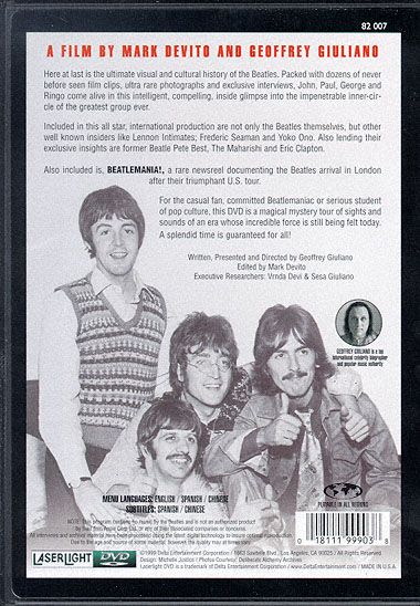 Geoffrey Giuliano is a Beatleologist who has written lots of books about them ,notably an interesting Harrison biography (Harrison reportedly said: "this guy knows more about my life than I do").He appears in his movie,as some kind of tourist guide who takes the viewer to Abbey road,the roof-where-the-last-concert-took-place ,and the gates of Strawberry Fields. Most of the interviews come from the post-Beatles era: Pete Best (and Fred Seaman ) speaks of the savage days in Hamburg .There is a lot of unseen photographs although they are sometimes anachronistic : for instance,they are talking about the campaign for peace while showing pictures of Lennon with his second son Sean.