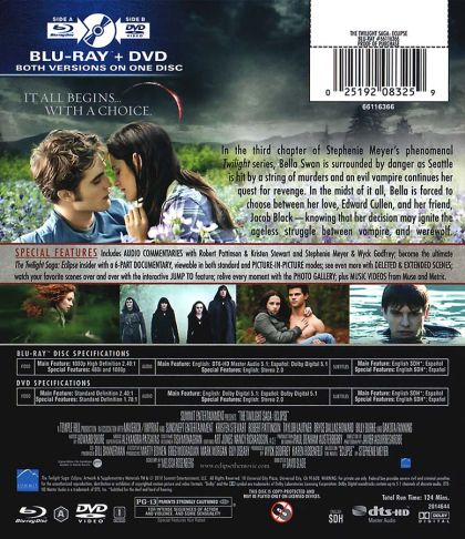 Bella once again finds herself surrounded by danger as Seattle is ravaged by a string of mysterious killings and a malicious vampire continues her quest for revenge. In the midst of it all, she is forced to choose between her love for Edward and her friendship with Jacob, knowing that her decision has the potential to ignite the ageless struggle between vampire and werewolf. With her graduation quickly approaching, Bella is confronted with the most important decision of her life.